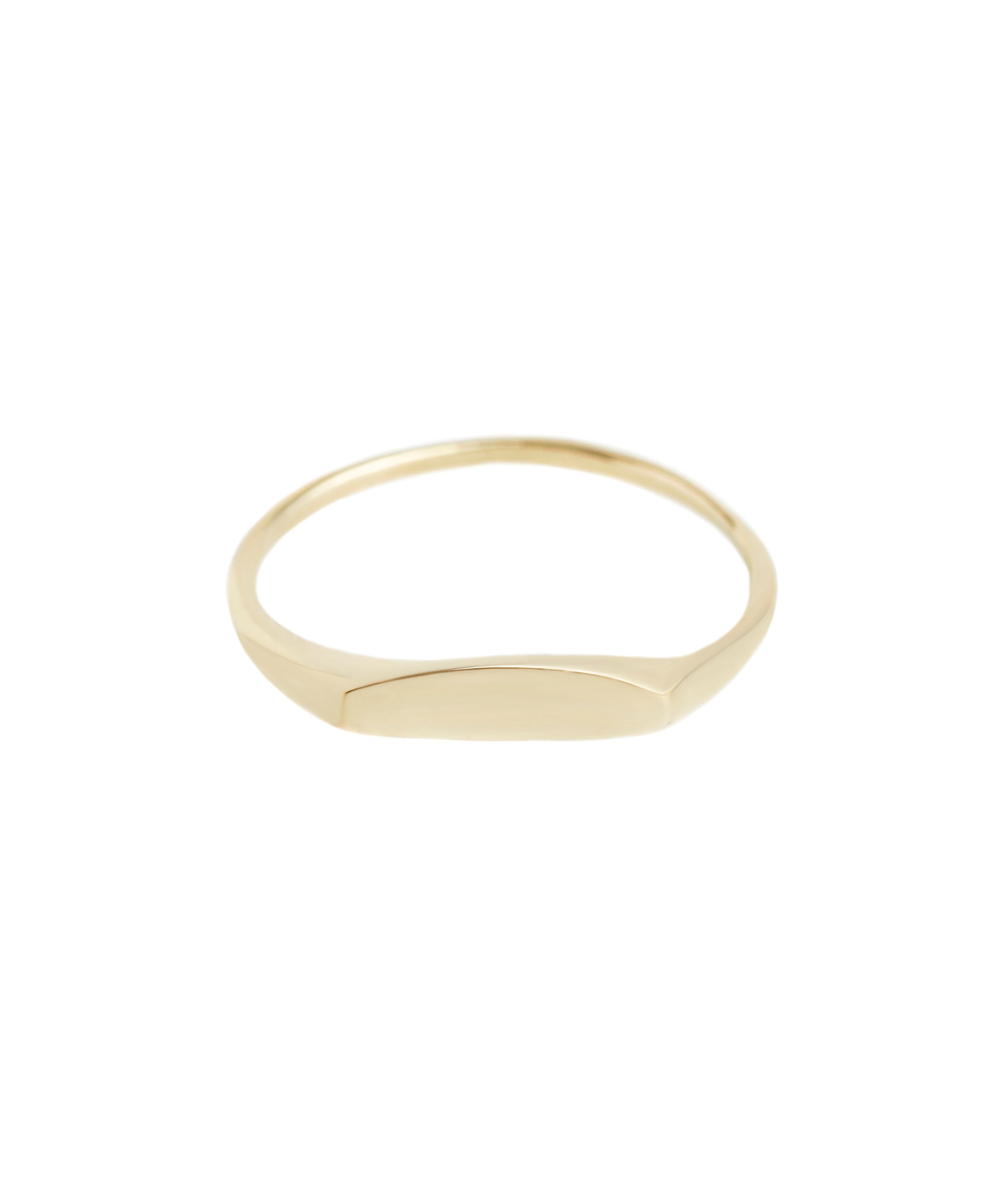 A favorite signet for custom engraving, perfect for stacking or wearing alone. A dainty signet ring with a slightly curved top.