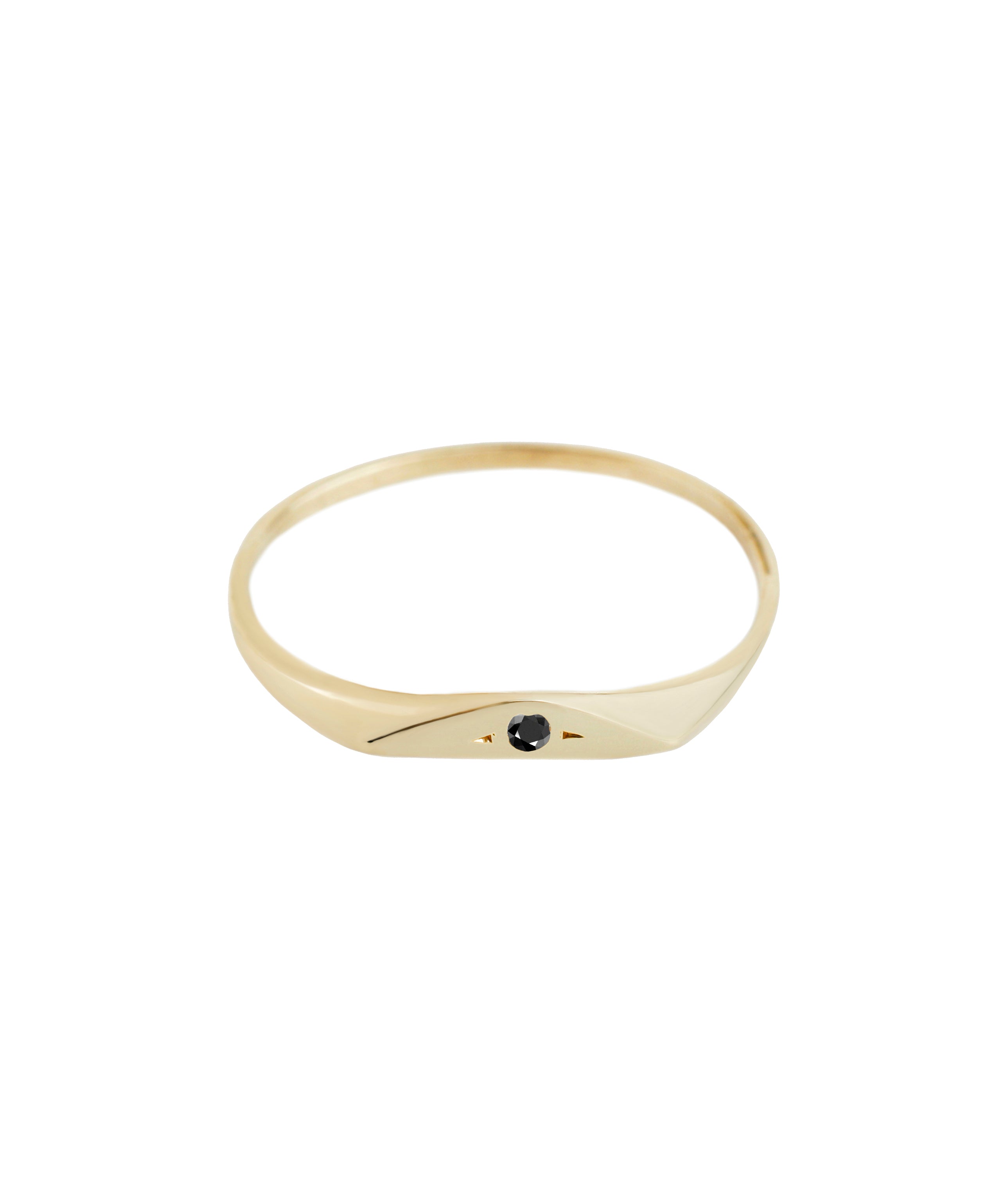 A favorite signet for stacking or wearing alone. A dainty signet ring with a slightly soft triangle face, star set with a black diamond.