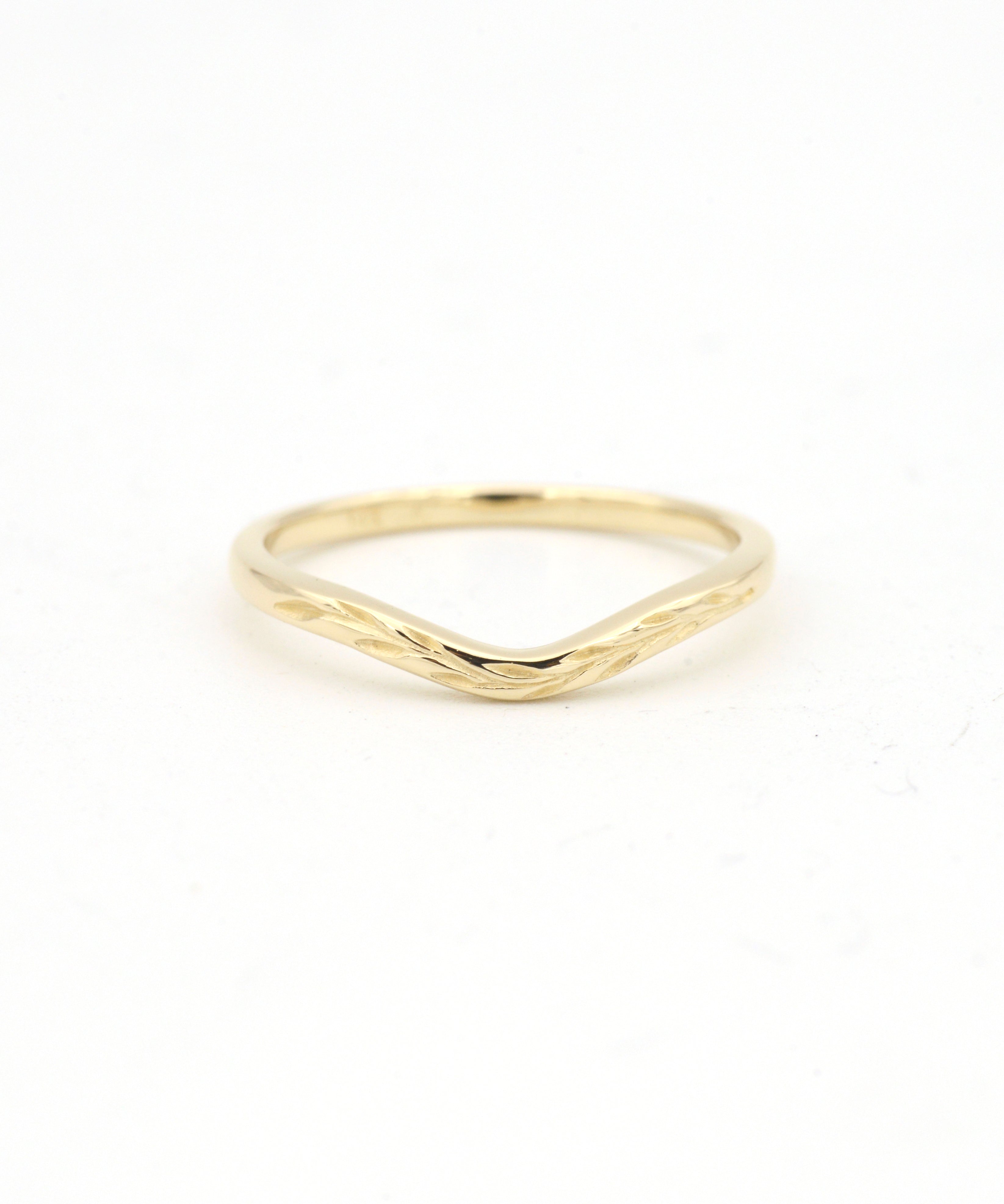 A curved band engraved with an olive branch. Perfect for nestling with an engagement ring.