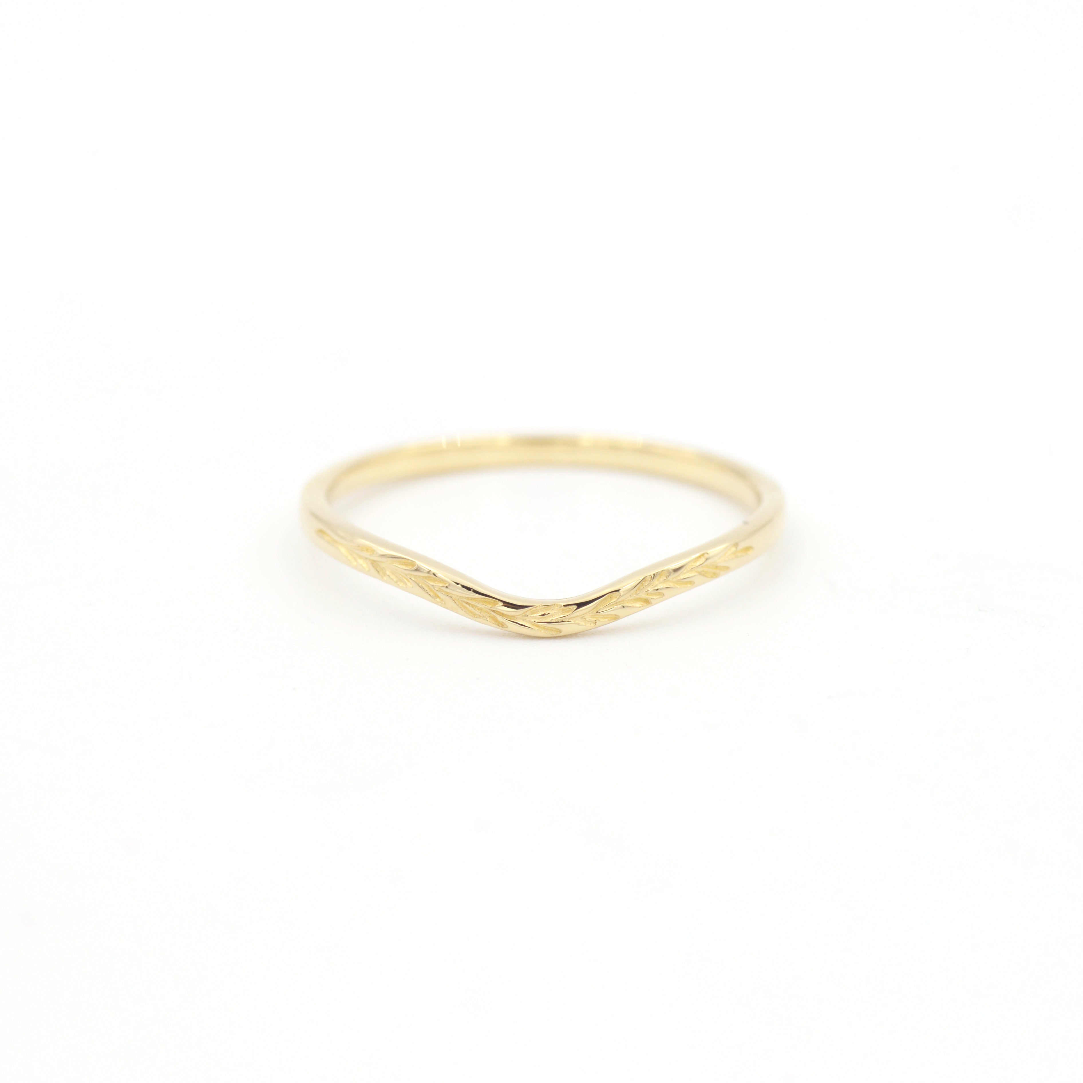 A curved band engraved with a sprig of rosemary. Perfect for nestling with an engagement ring.