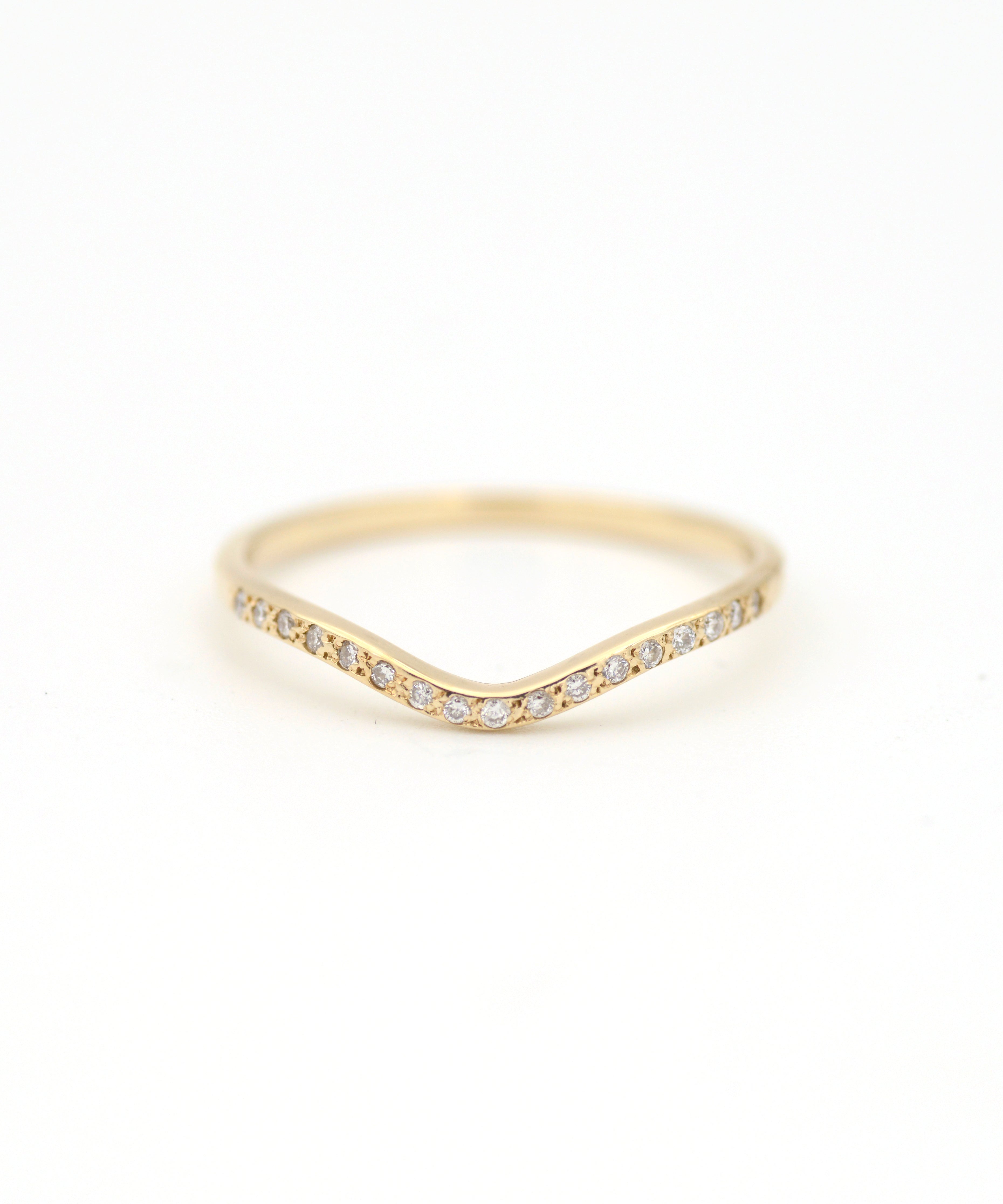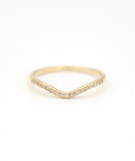 A curved band with pavé set diamonds. Perfect for nestling with an engagement ring.
