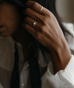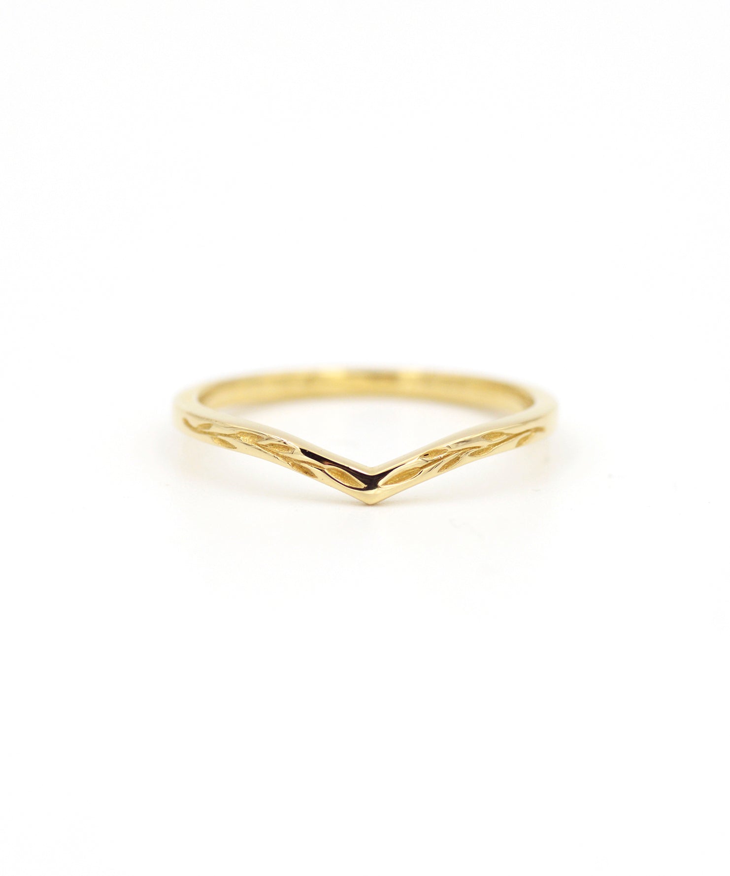 A v-shaped band with our signature olive branch engravings. Perfect for nesting with an engagement ring.