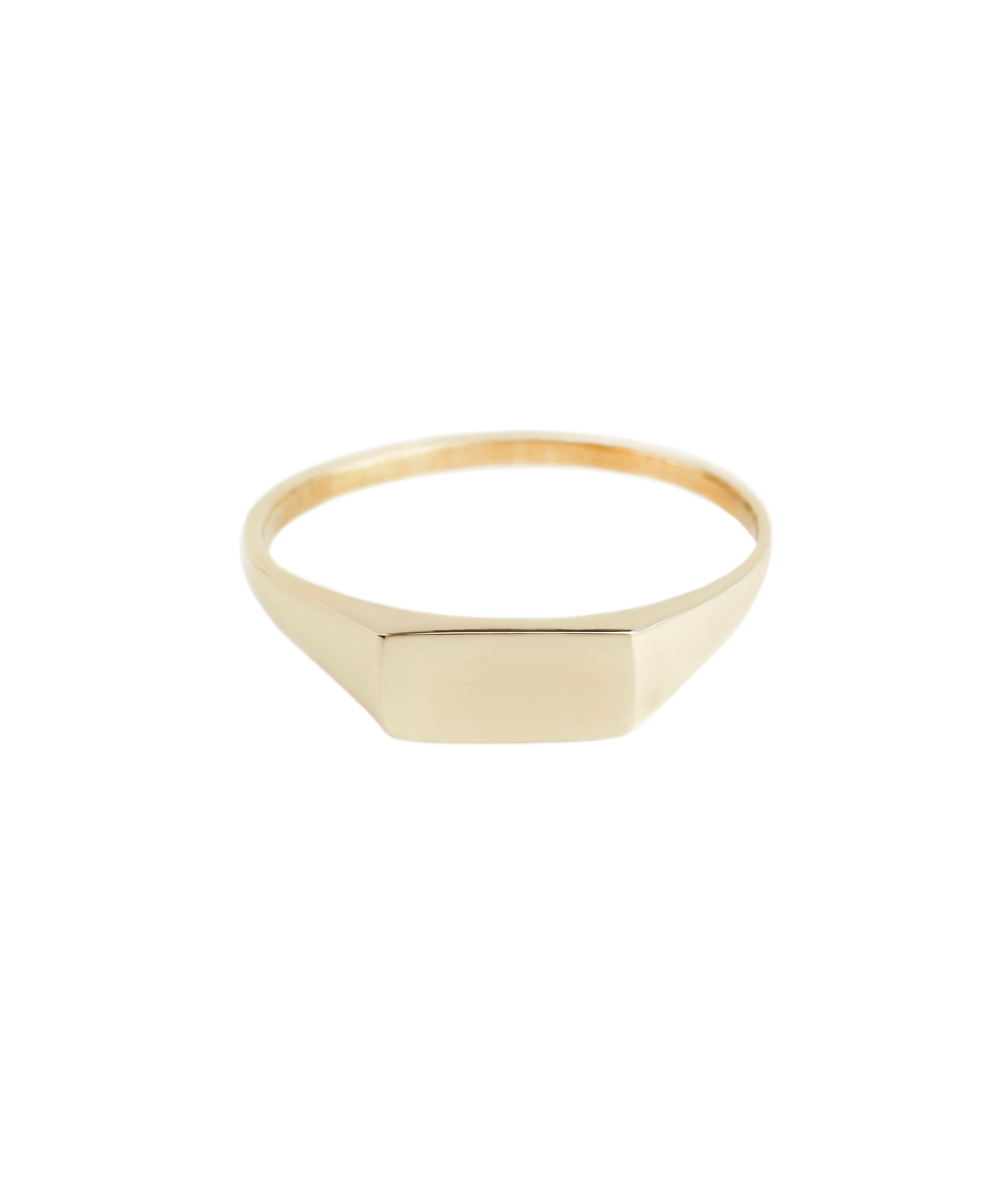 A favorite signet for custom engraving, perfect for wearing solo or for stacking. A dainty signet ring with a rectangular face.