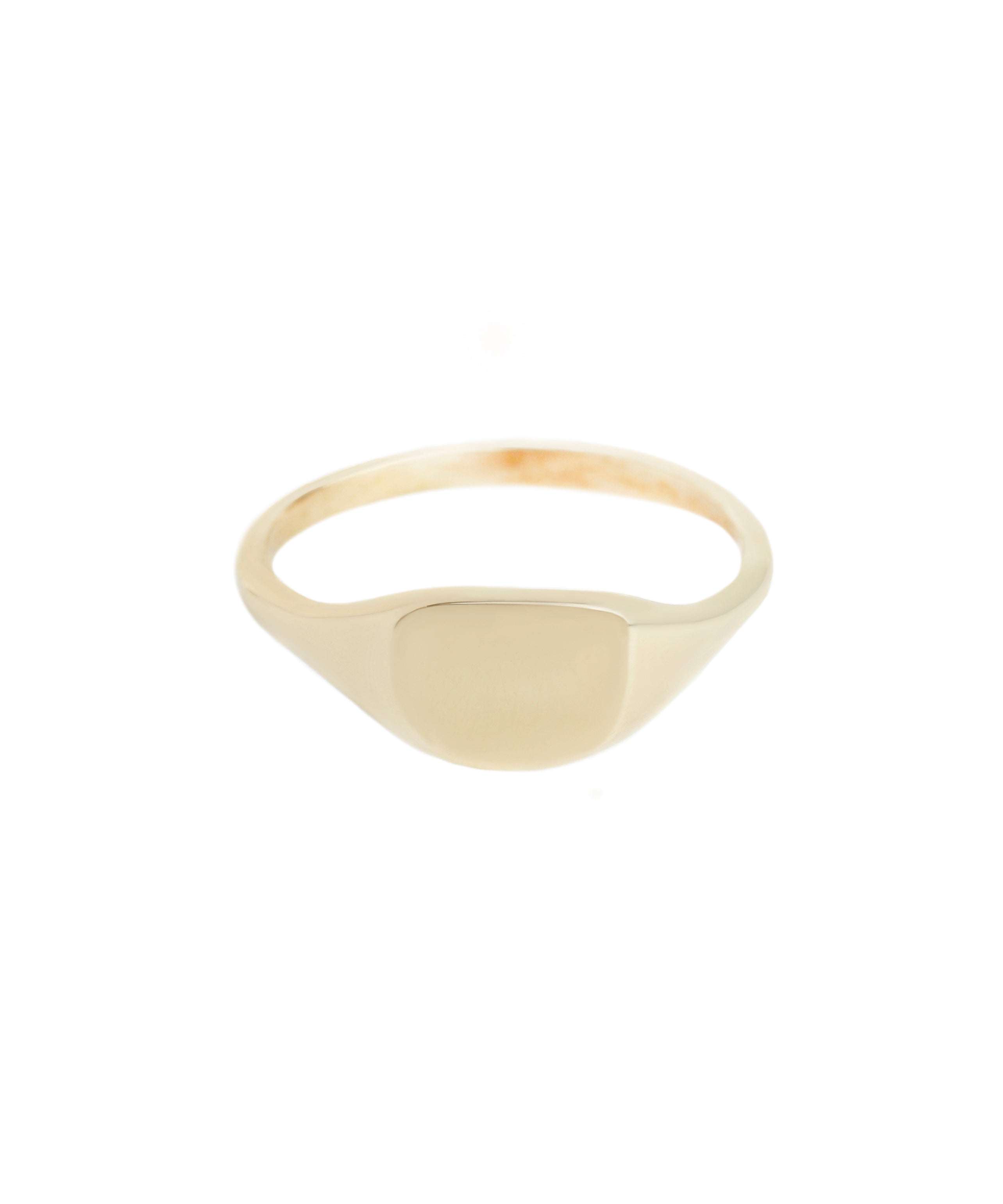 A favorite signet for custom engraving. A dainty signet ring with a soft shield face.