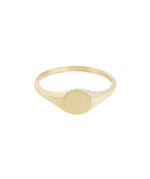 A favorite signet for custom engraving. A dainty signet ring with a soft circular face.