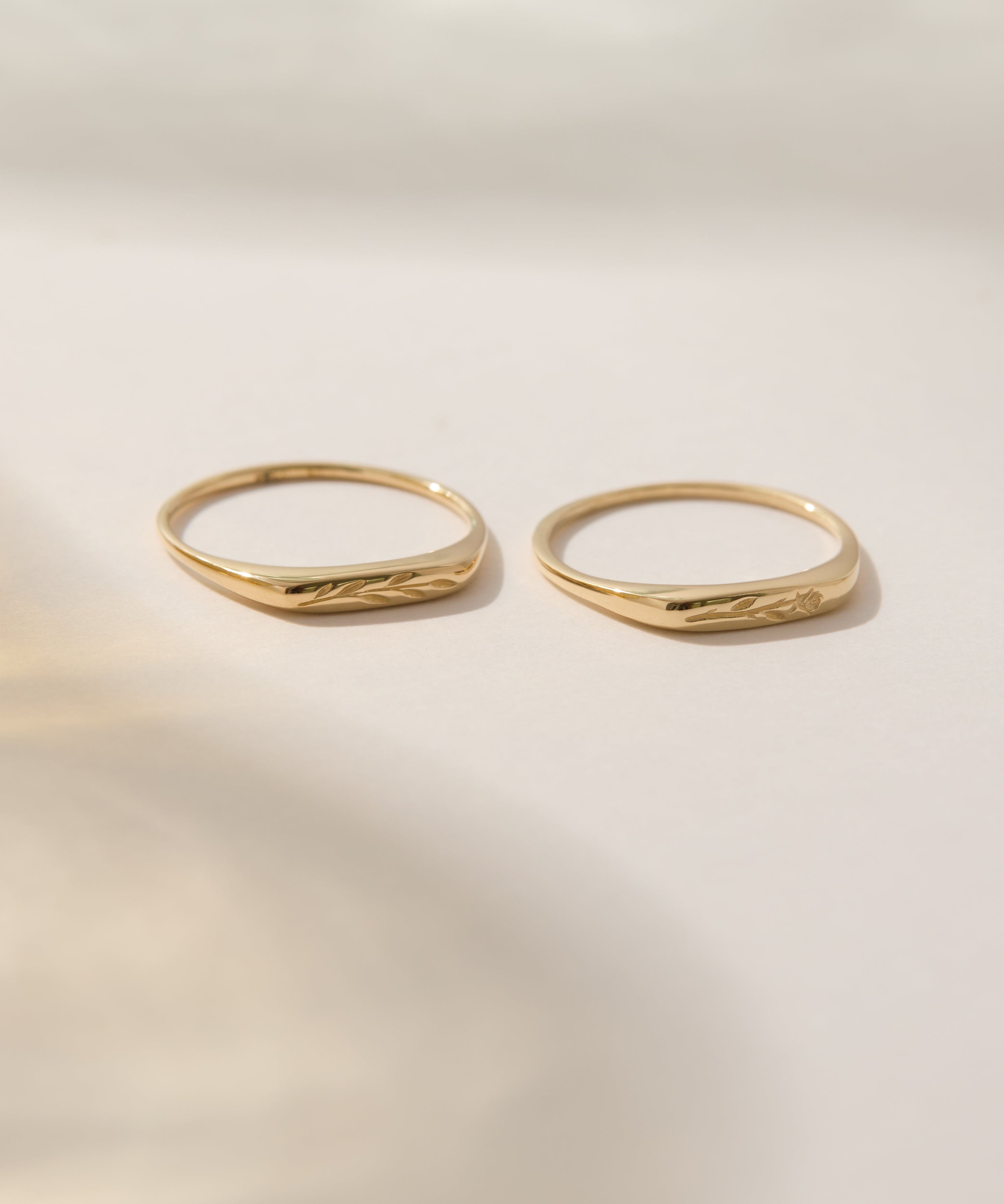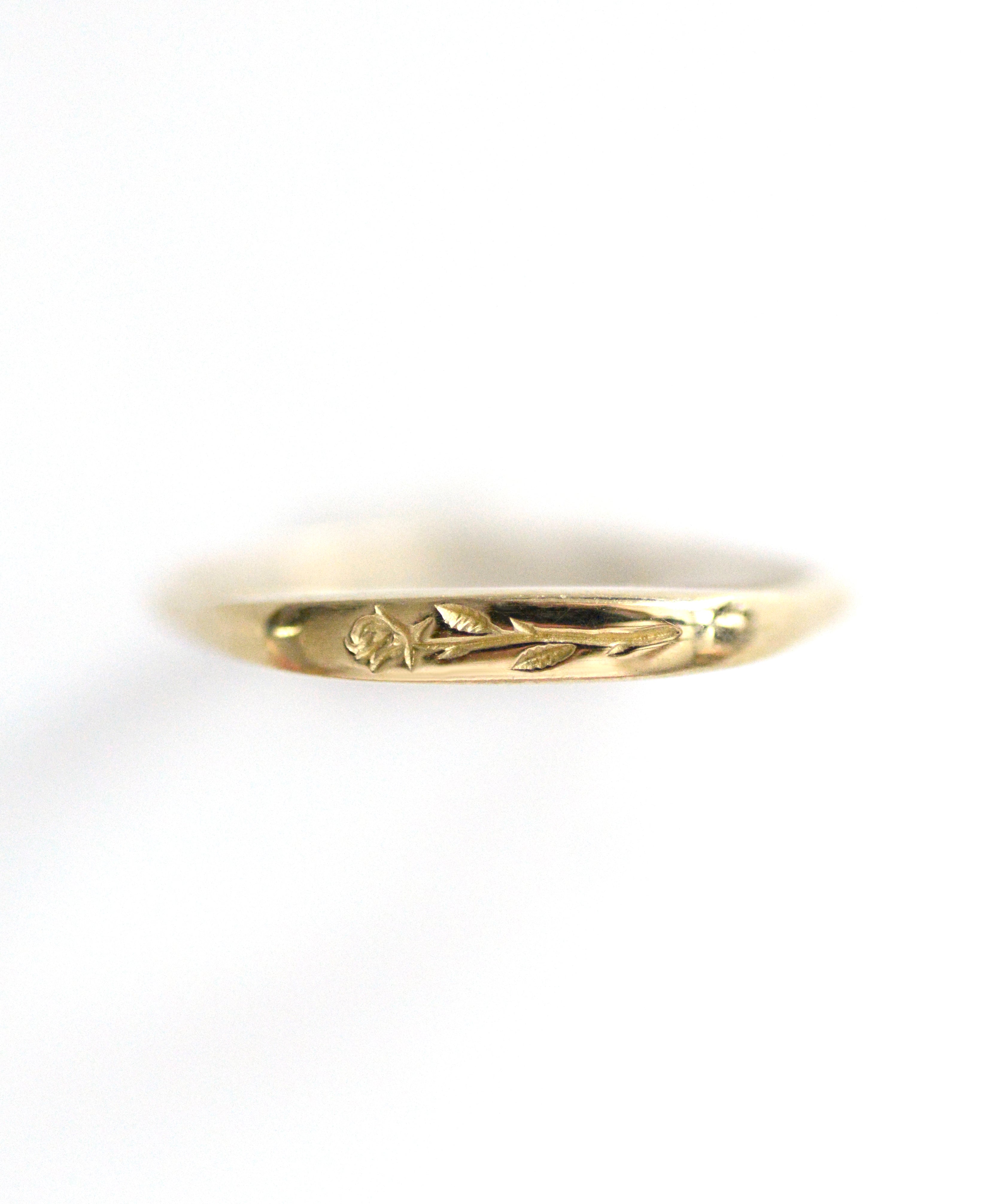 A dainty stackable signet ring engraved with a rosebud. Can also be worn solo, or as an alternative wedding band.