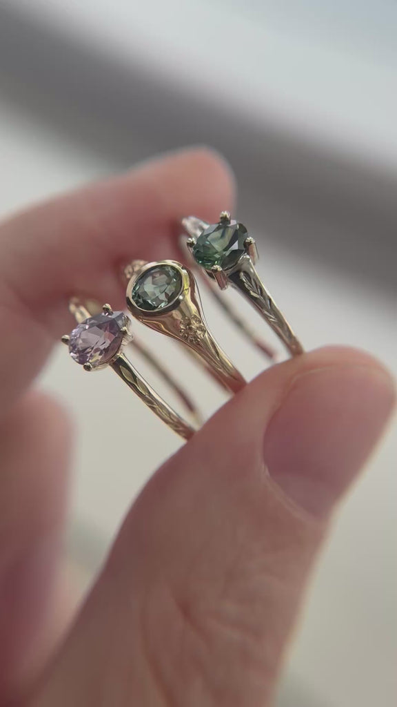 OOAK Fae Ring with Forest Green Sapphire